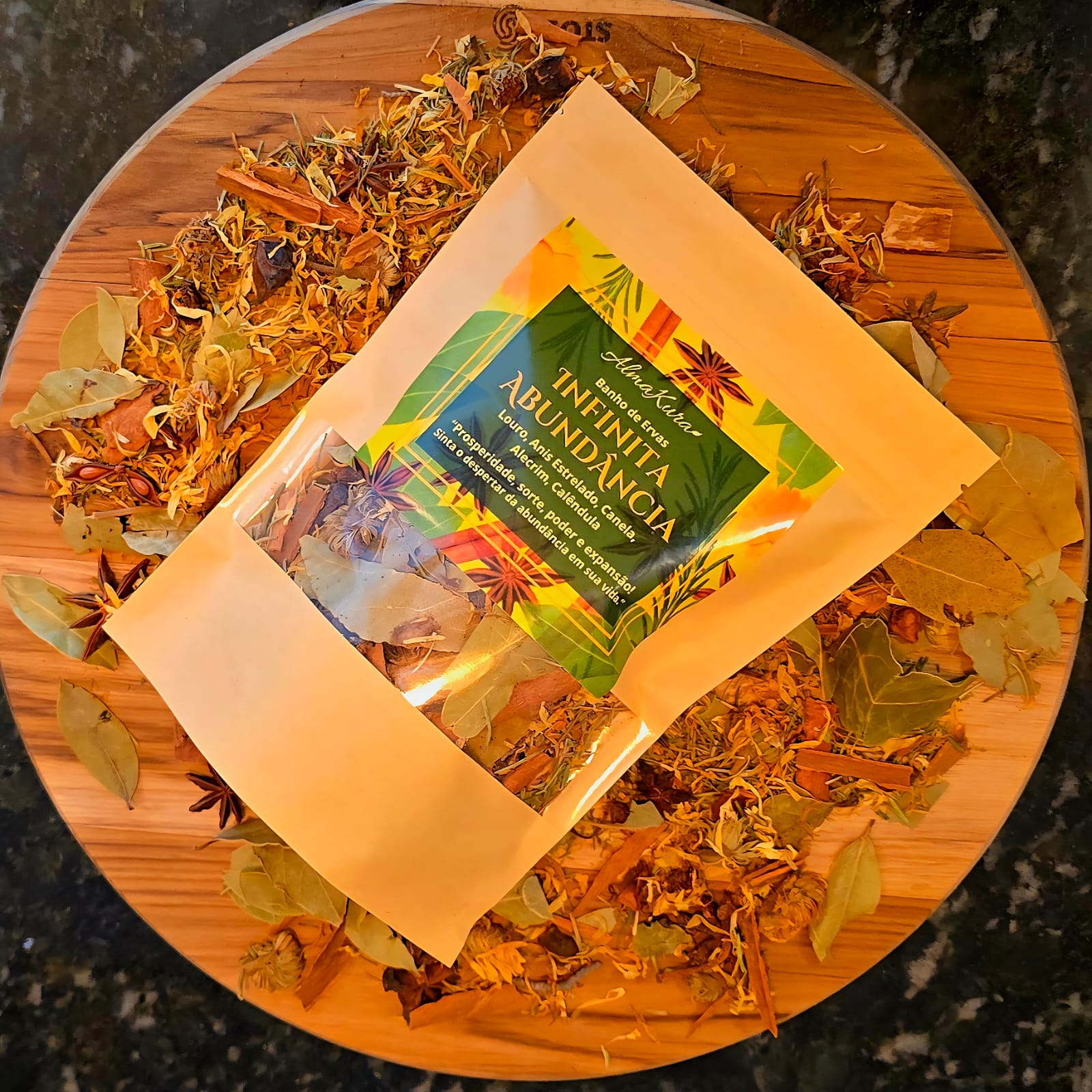 O Banho Infinita Abundância Almakura é um ritual criado para abrir caminhos, desbloquear oportunidades e atrair prosperidade em todas as áreas da vida. Uma fusão harmoniosa de ervas e especiarias desenvolvida para conectar corpo, mente e energia ao fluxo de abundância natural do universo.